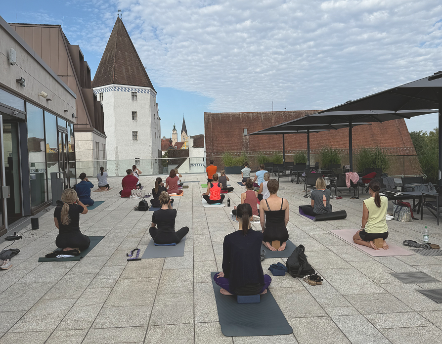 Genieße eine entspannte Yoga-Session über den Dächern der Stadt mit weitem Blick und frischer Luft. Danach einen wunderbaren vielfältigen leckeren Brunch. Ein Vormittag zum Durchatmen, Auftanken und Genießen.